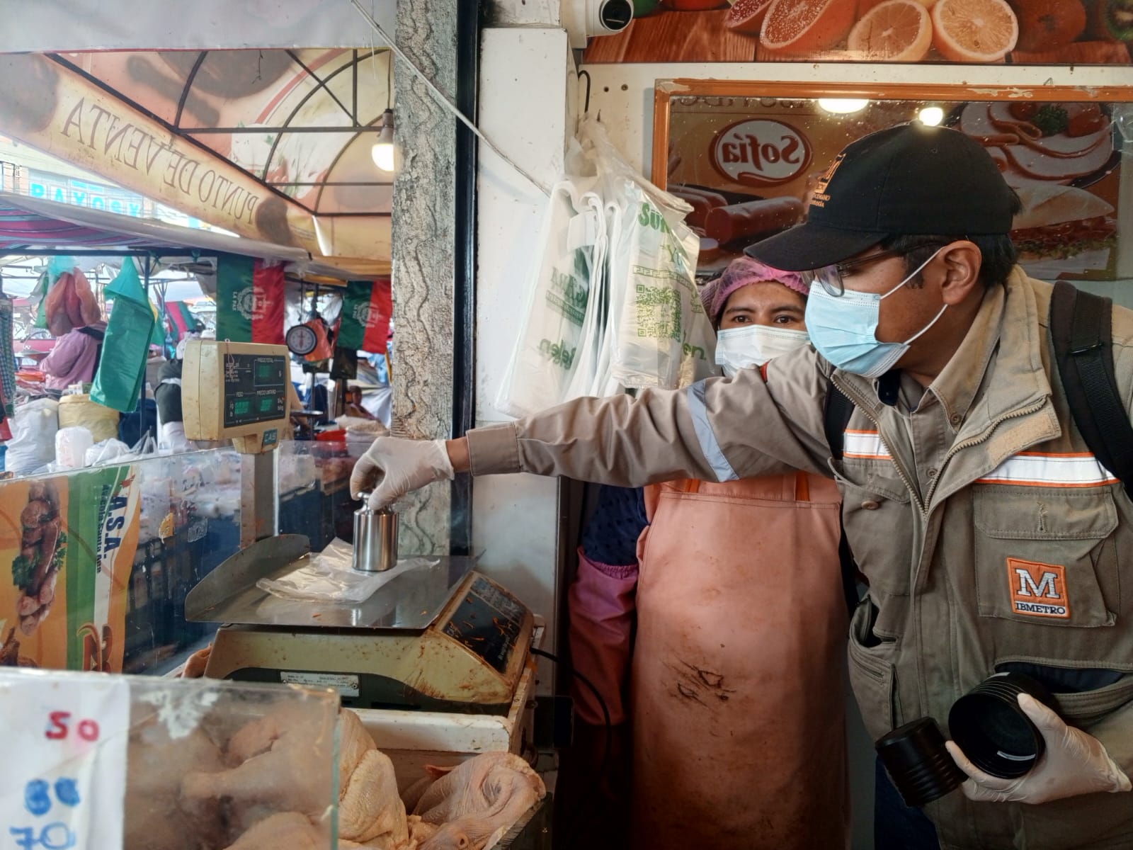 El Instituto Boliviano de Metrología (IBMETRO), la Intendencia Municipal y el Viceministerio de Defensa de los Derechos del Usuario y del Consumidor realizaron un operativo de control a balanzas en la zona Garita de Lima de La Paz.