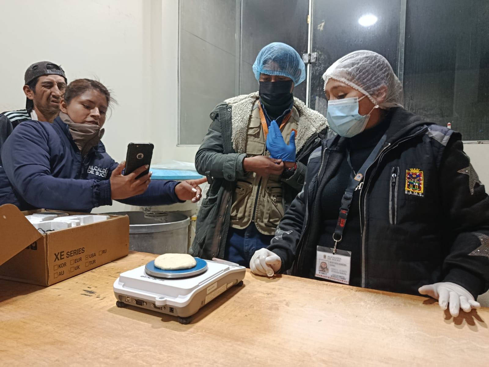 Durante la madrugada, el Instituto Boliviano de Metrología (IBMETRO), la Intendencia Municipal y el Viceministerio de Defensa de los Derechos del Usuario y del Consumidor realizaron un operativo de control al peso del pan de batalla en Sucre.